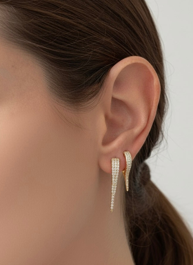 Elevate your holiday style with our elegant and fashionable Cz stone spikes. These hoops are expertly designed to make a lasting impression, perfect for any festive occasion. With their sophisticated charm, you'll be sure to turn heads and make a statement. Add these to your collection for a touch of luxury.