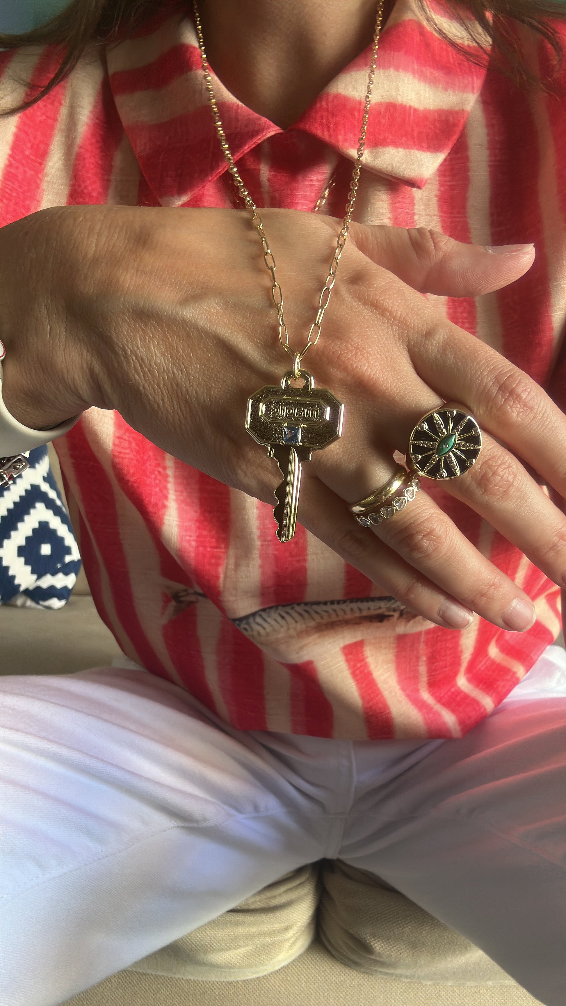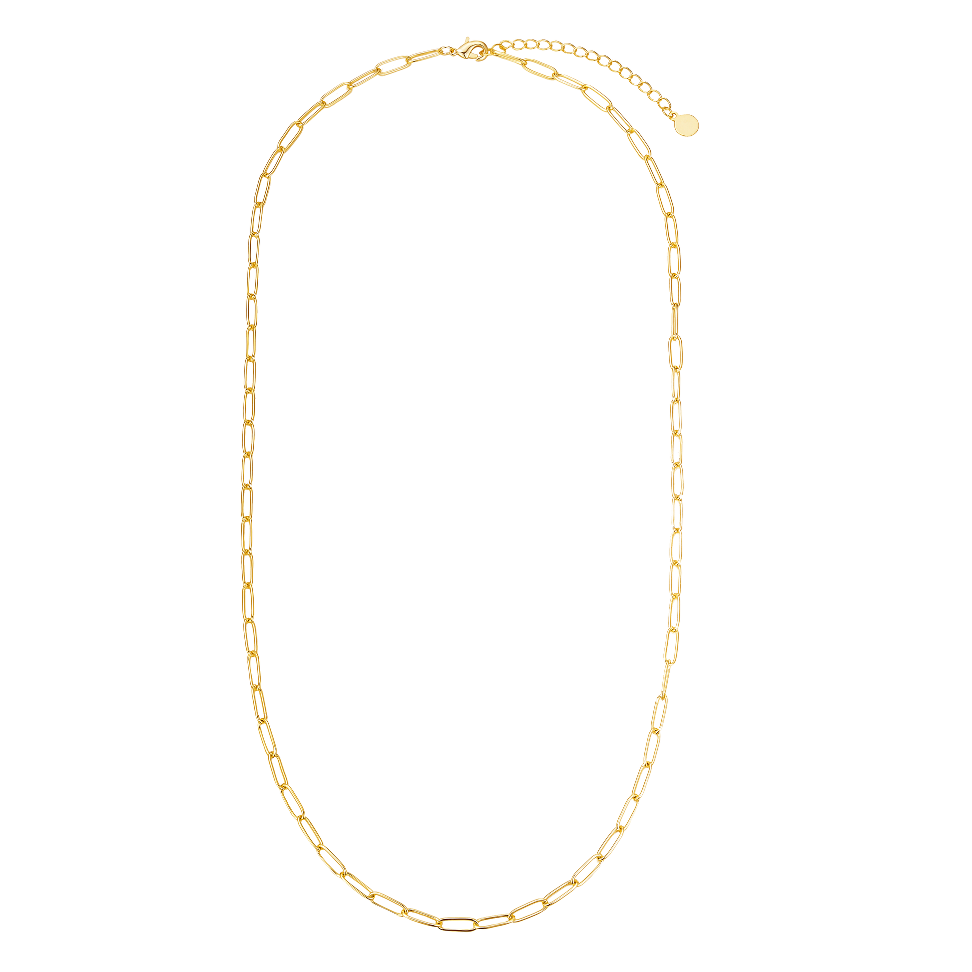 Add a modern yet timeless touch to your wardrobe with our 24mm long paperclip necklace. Made of high-quality brass and plated with 16k gold, it is perfect for your charm collection. Upgrade your style with this versatile piece.