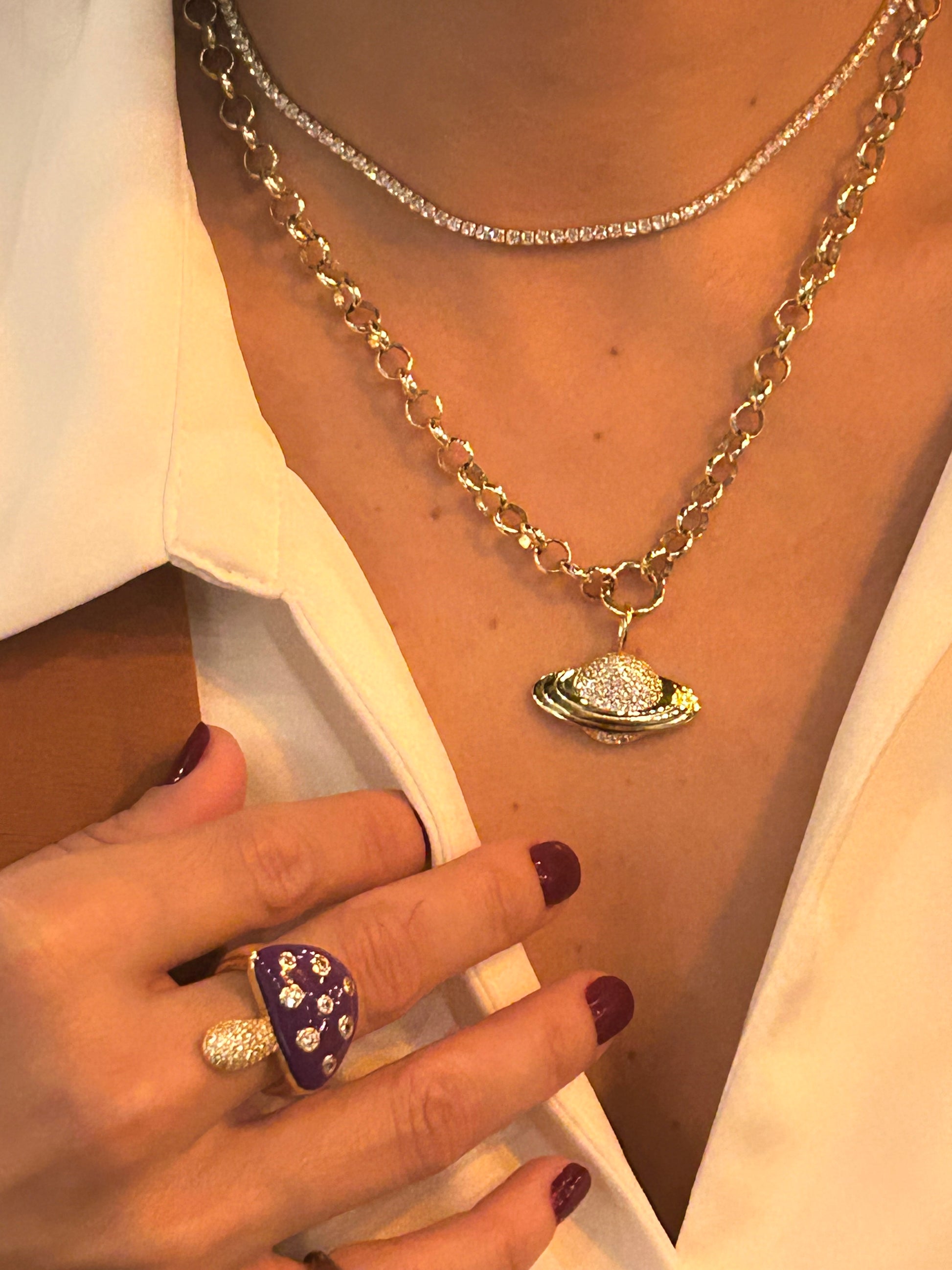 This satellite charm adds a unique look to any jewelry collection. Made of brass and adorned with clear cz stones, it is truly out of this world. Expertly crafted and designed with precision, this charm is perfect for any space enthusiast or fashion lover.