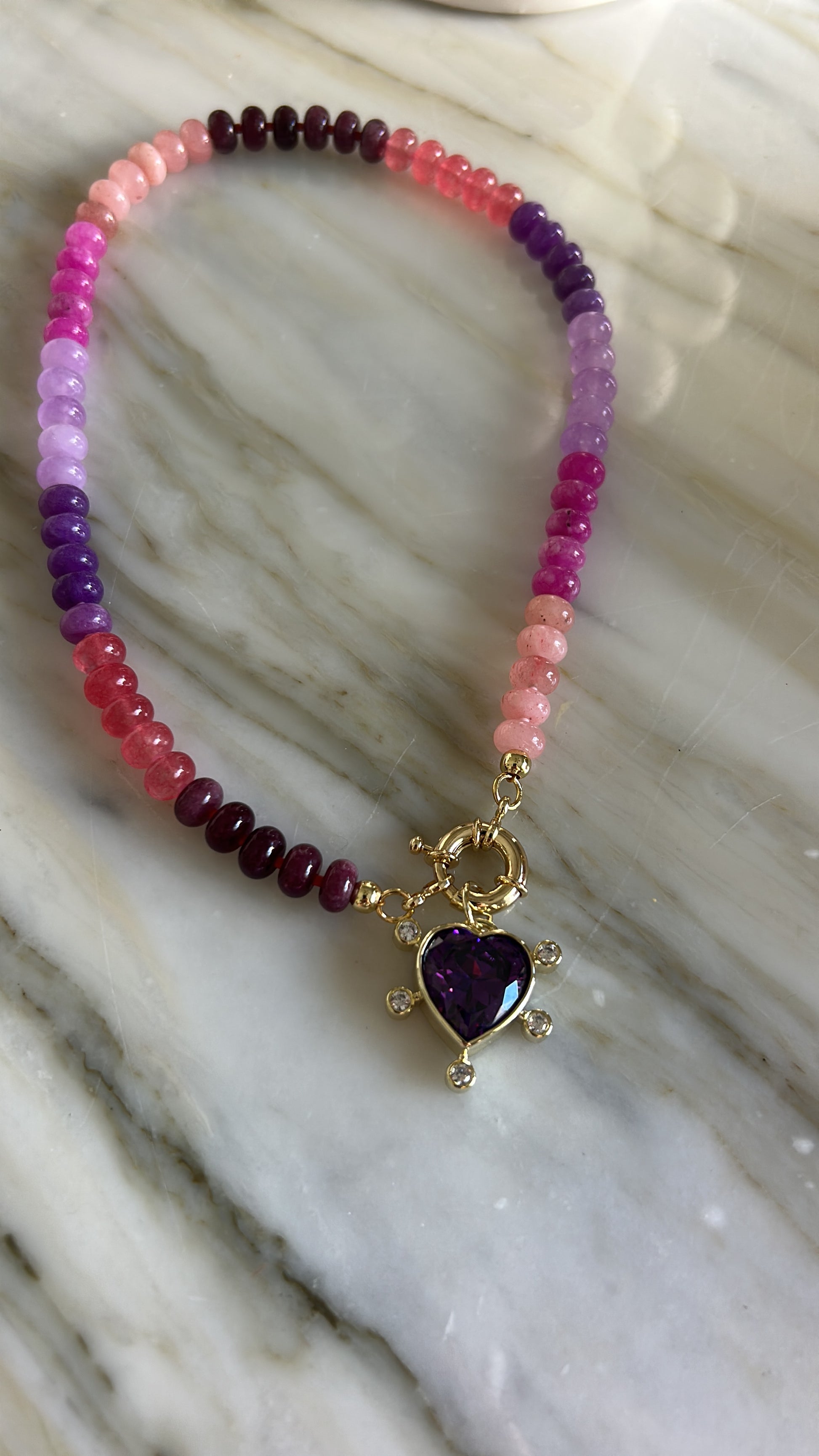 This stunning purple heart necklace is sure to make a bold impression at any occasion or event. The heart symbolizes love and is adorned with sparkling CZ spikes, adding a unique touch to this beautiful piece of jewelry. Perfect for expressing your love or as a standout accessory.