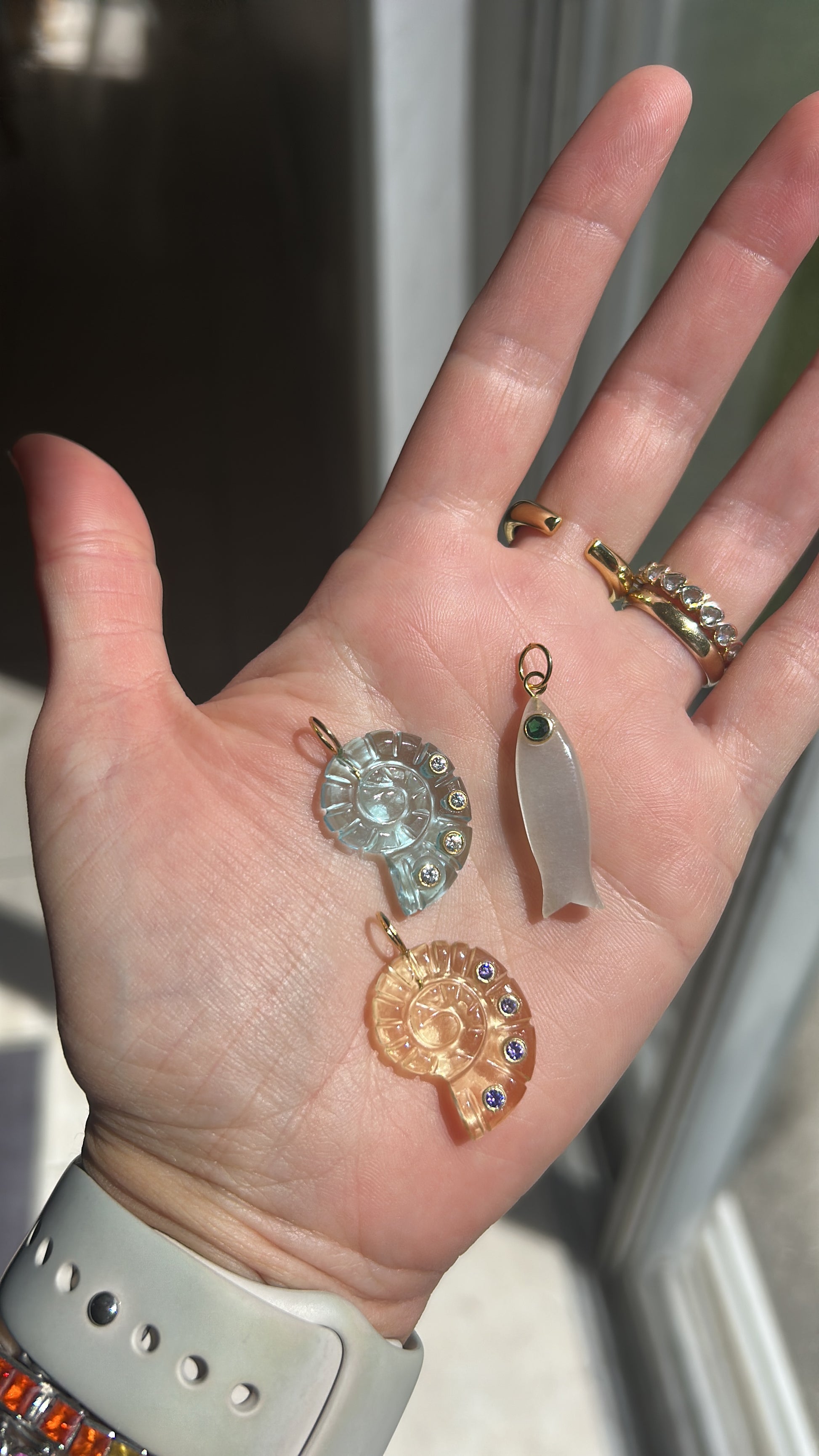 Stone sardines charms